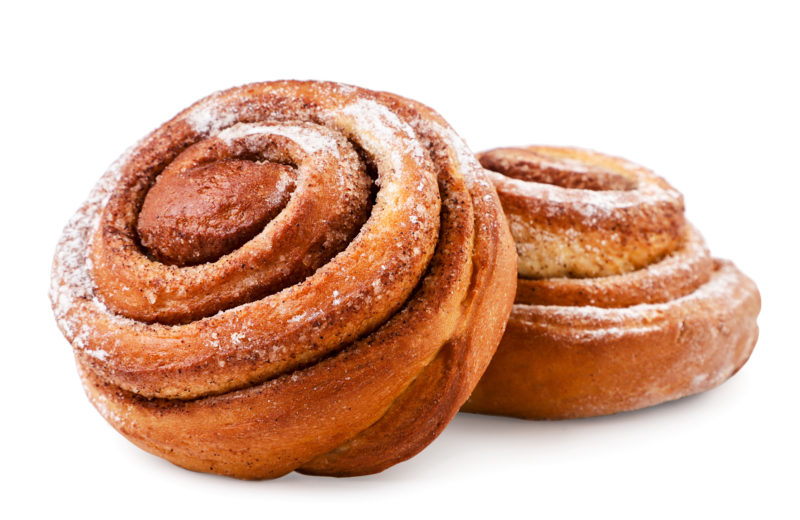 Sweet cinnamon buns on white background. Isolated